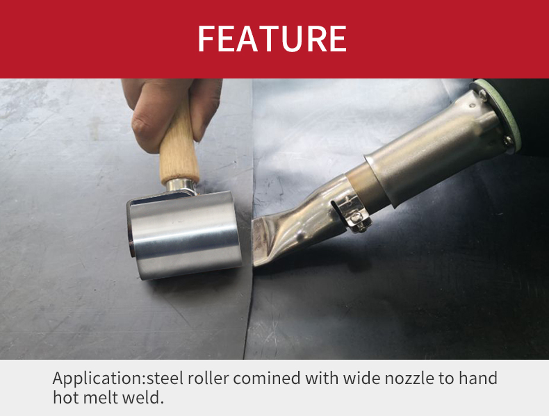 መተግበሪያ: ብረት ሮለር ከሰፊ አፍንጫ ጋር በእጅ ሙቅ መቅለጥ ብየዳ ጋር ይመጣል።