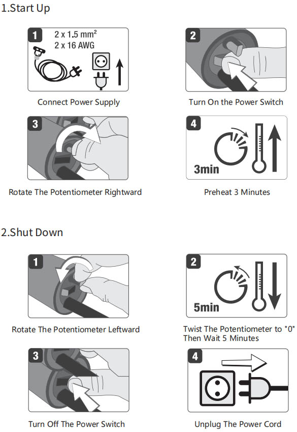 • Iṣeduro didara ko pẹlu ibajẹ si awọn ẹya ti o wọ (awọn eroja alapapo, erogba gbọnnu, biarin, ati be be lo), bibajẹ tabi awọn alebu ṣẹlẹ nipasẹ aibojumu mu tabi itọju, ati ibajẹ ti o fa nipasẹ awọn ọja ja bo. Lilo alaibamu ati laigba aṣẹ iyipada ko yẹ ki o bo nipasẹ atilẹyin ọja.