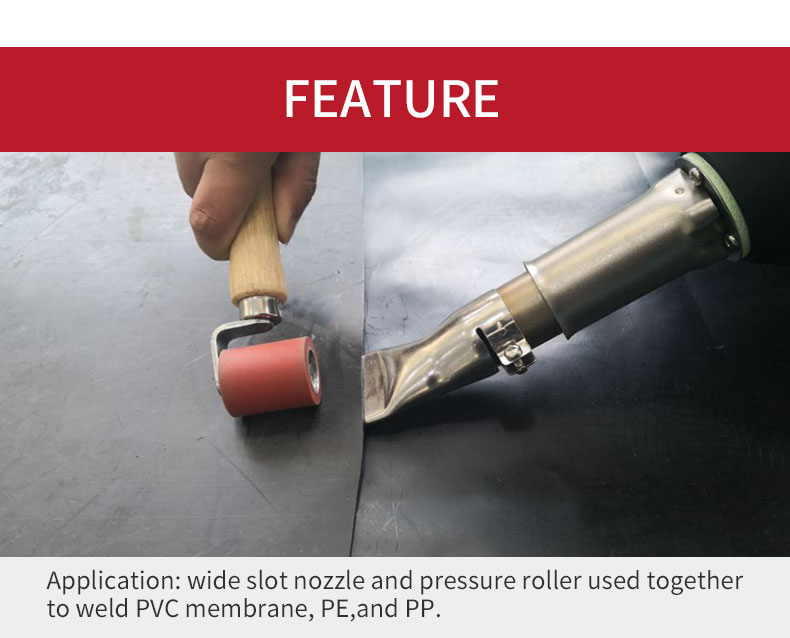 Application:wide slot nozzle and pressure roller used together to weld PVC membrane,PE,and PP.