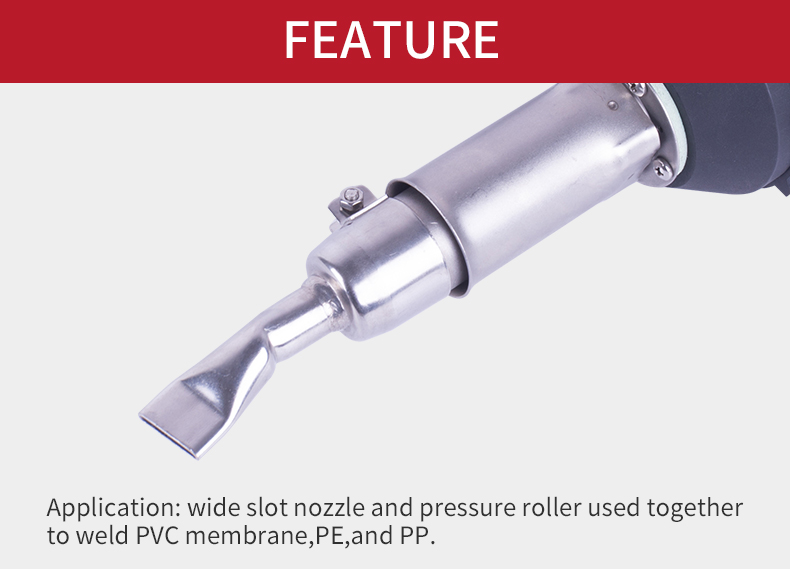 Application:wide slot nozzle and pressure roller used together to weld PVC membrane,PE,and PP.