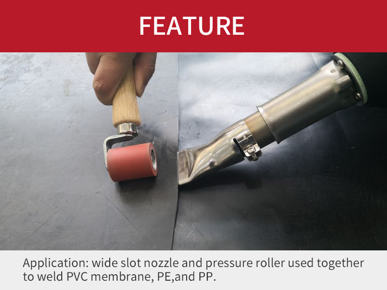 Application:wide slot mozzle and pressure roller used together to weld PVC membrane,PE,and PP.