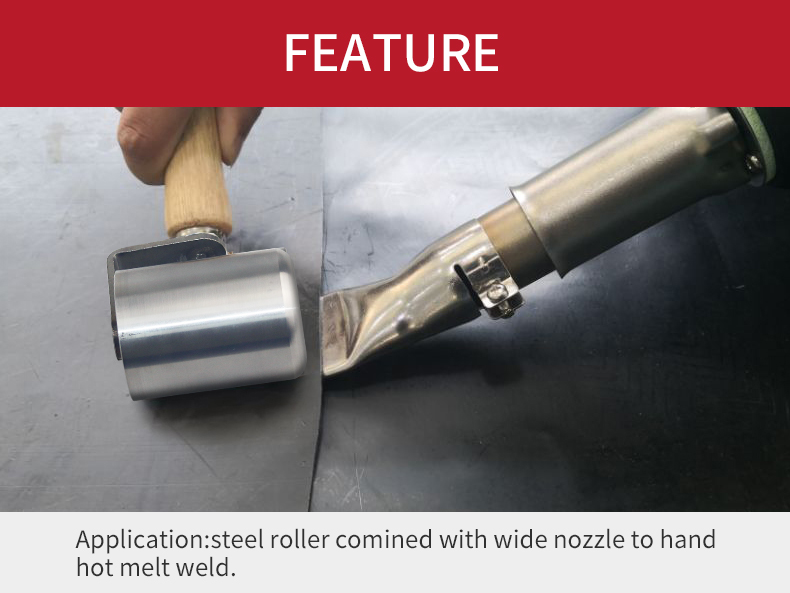 Application:steel roller comined with wide nozzle to hand hot melt weld.