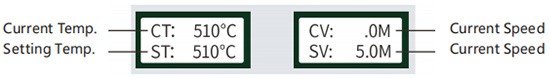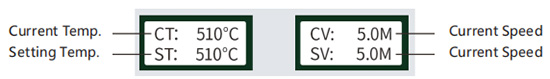 to set the required temperature. You can set the temperature according to the welding materials and the ambient temperature. LCD display screen will show the setting temperature and the current temperature.