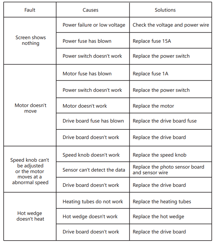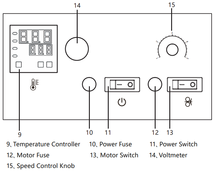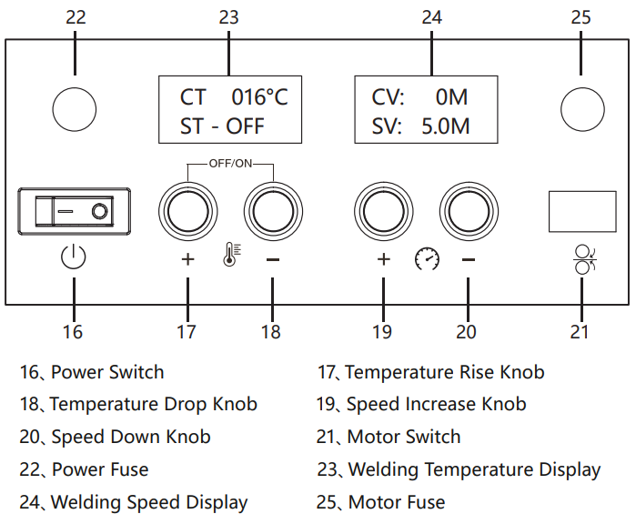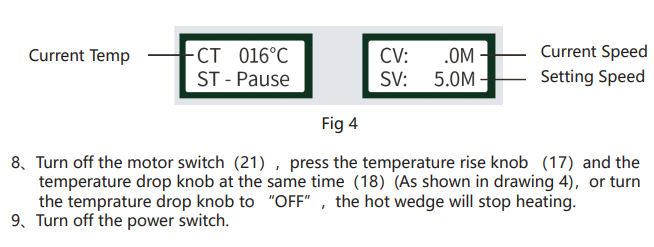 9、Turn off the motor switch (13), turn off the temperature controller (9), the hot wedge stops heating.
