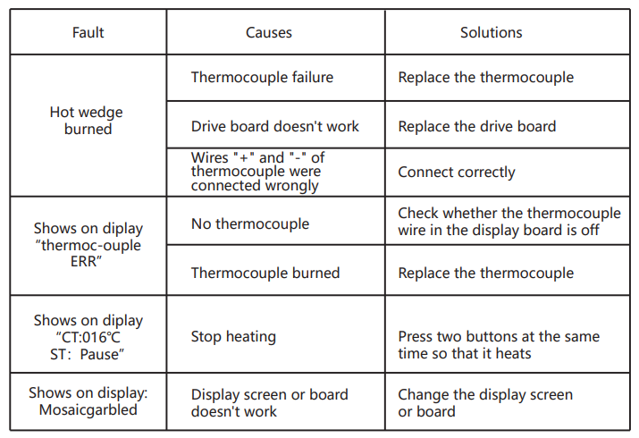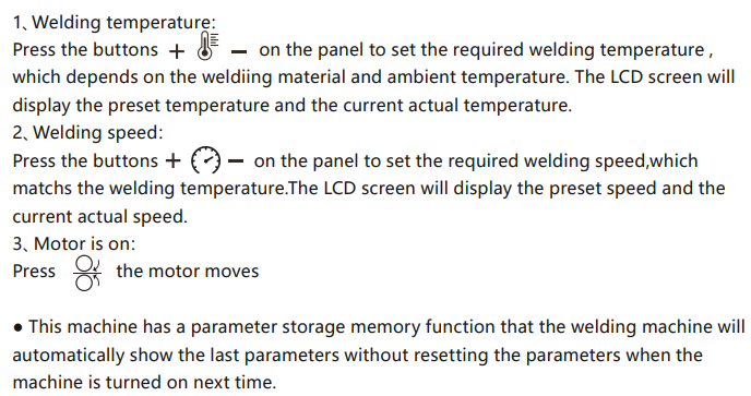 Especially when it is close to combustible materials or explosive gas, Please do not touch the hot wedge (during welding work or when the welding machine has not completely cooled down) so as not to burn