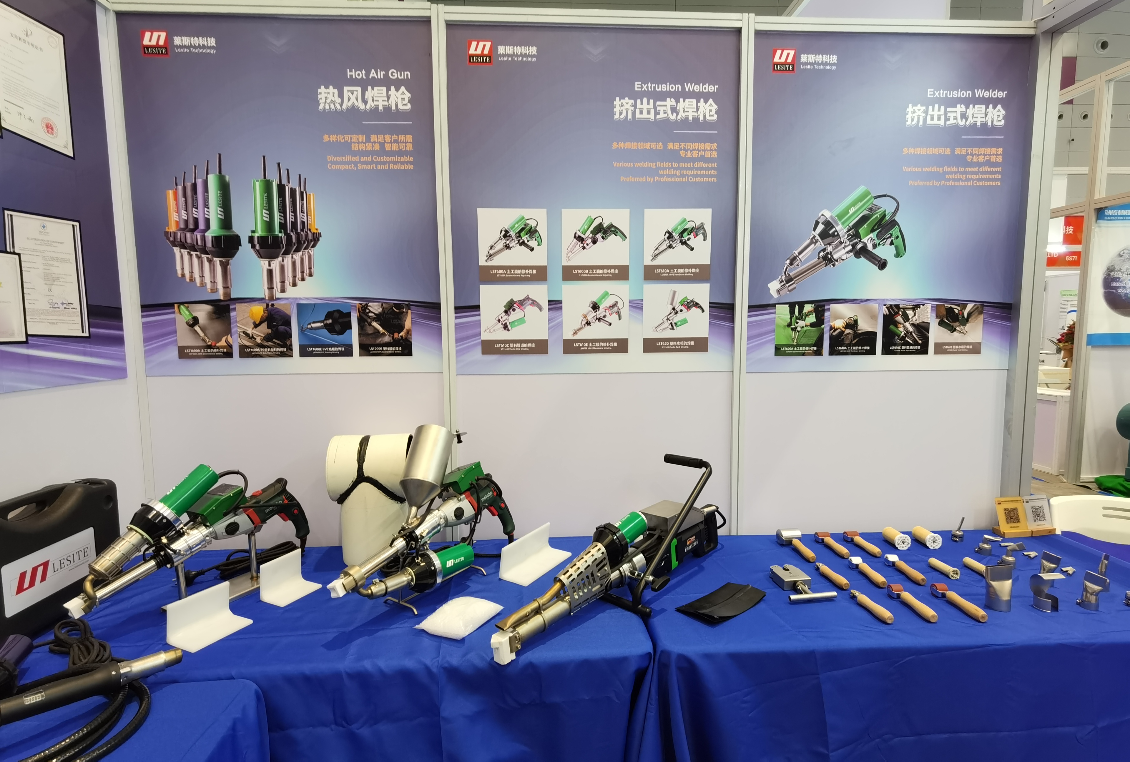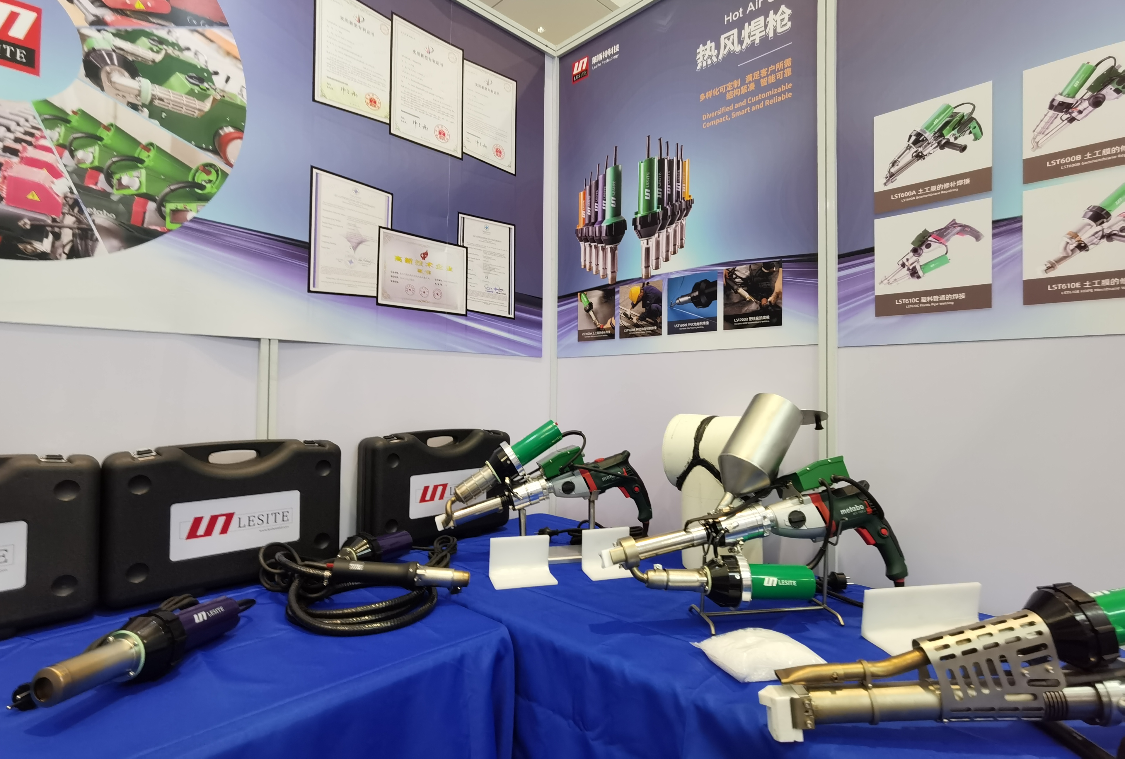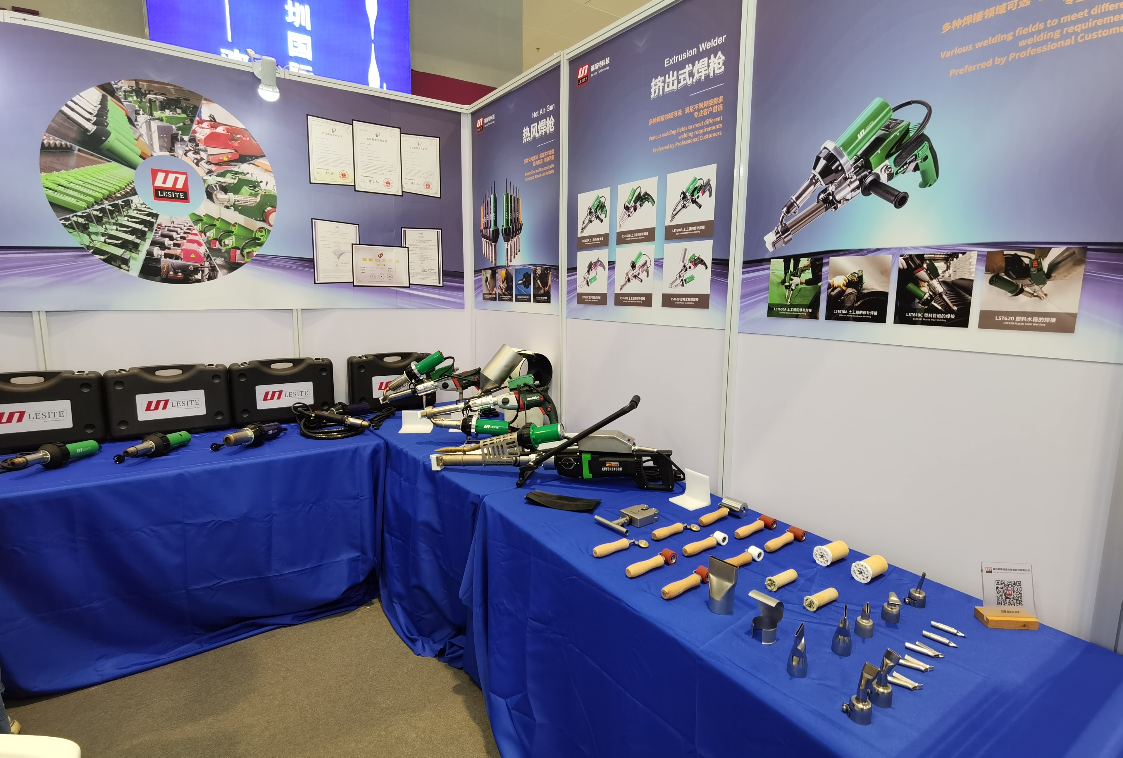 On site, Lesite sincerely demonstrated its “expert skills” and “unique skills”, showcasing cutting-edge and innovative solutions in the industry.At this exhibition, Leicester specially showcased its new product “Long Extrusion Welding Gun M-EX30″, which has super power, unique appearance design, and eye-catching index report. Domestic appearance exhibition customers have consulted and experienced it one after another. Various types of products such as manual hot air welding guns, geomembrane welding machines, and roof welding machines have also received high attention from the audience.
