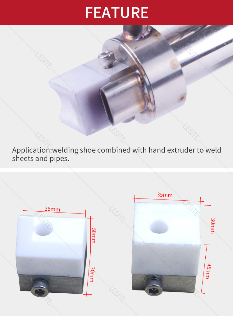 Apllication:welding shoe combined with hand extruder to weld sheets and pipes.
